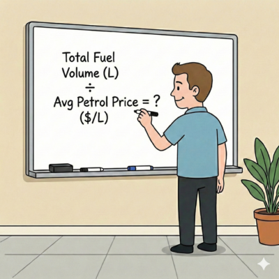 This sounds more daunting than it actually is. To find your total fuel volume, divide your total petrol spend by the average petrol price per litre for the year (at the time of conversion).