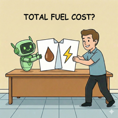The last step—we promise! Add your petrol spend and your calculated electricity amount together to arrive at your total fuel cost.
