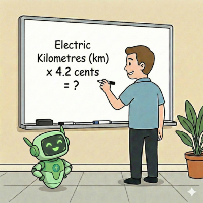 Multiply those electric kilometres by 4.2 cents (the ATO’s standard home charging rate). This gives you your total electricity cost for the year.