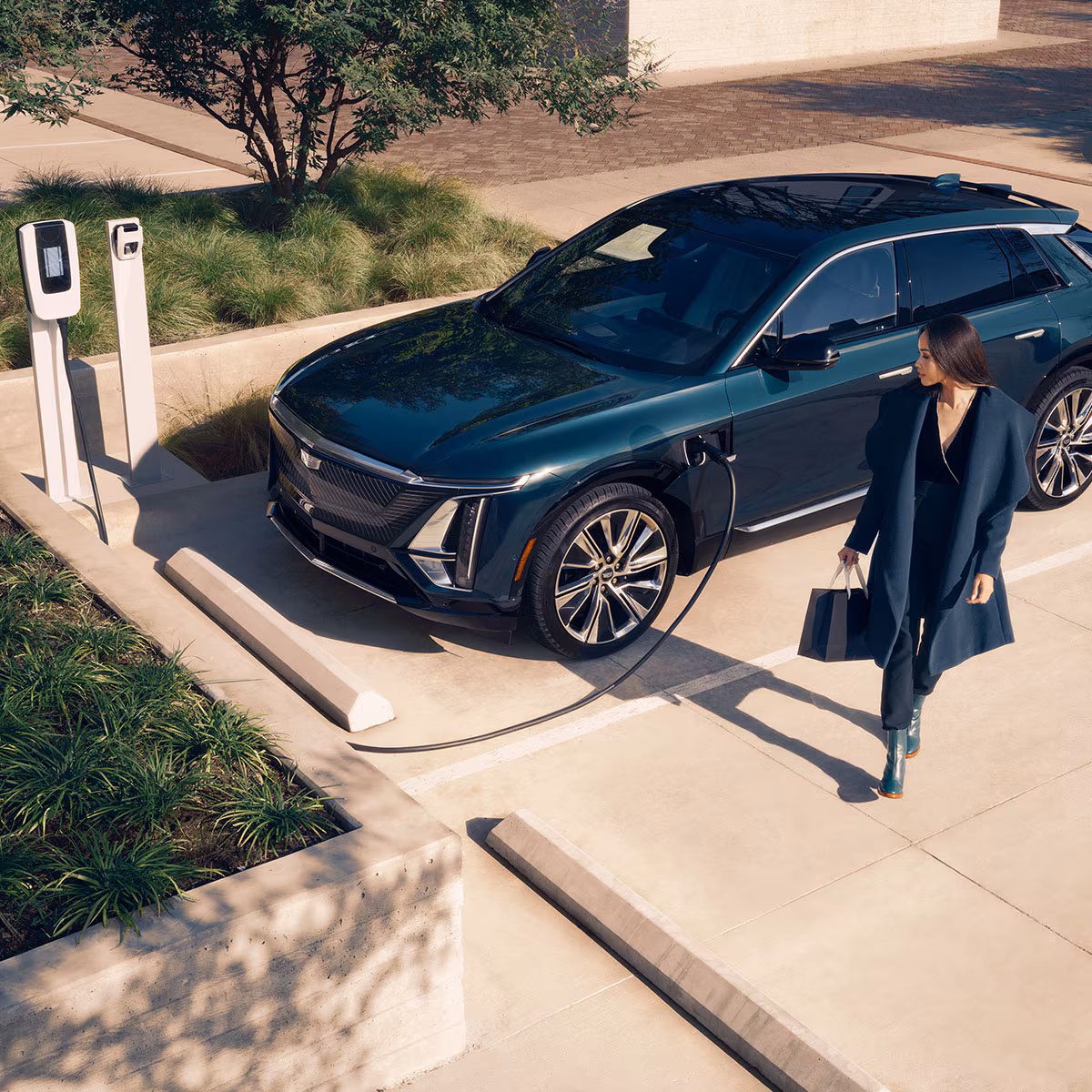 The Cadillac Lyriq Sport is an electric SUV crafted for drivers who want luxury with a sharper more dynamic edge. Its exterior stands out with athletic styling darker accents and a bold performance oriented presence that immediately sets it apart. Inside the cabin blends refined materials with a modern driver focused layout anchored by a sweeping 33 inch curved display that unites navigation entertainment and essential vehicle information in a striking panoramic interface.
